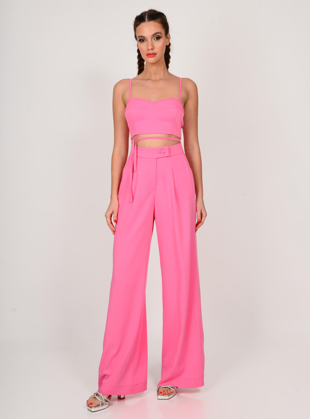 WE COSS γυναικείο crop top που δένει στο πίσω μέρος σε ροζ χρώμα.