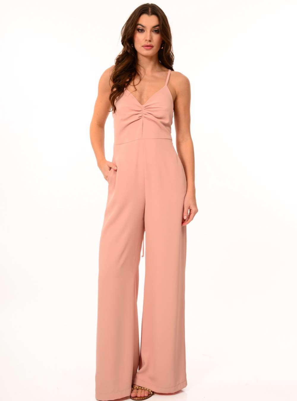 Ολόσωμη φόρμα με εντυπωσιακό δέσιμο στην πλάτη και σούρες στο ντεκολτέ WE COSS FASHION