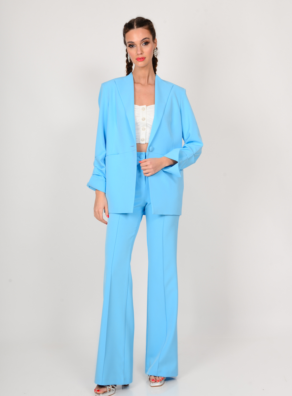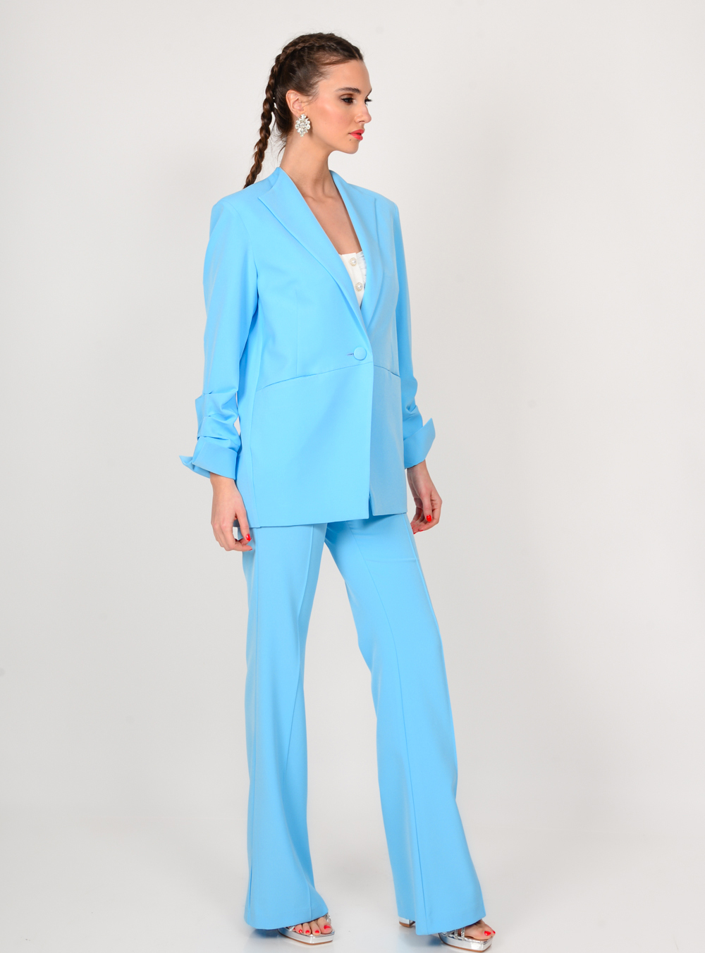 Γυναικείο παντελόνι σε ciel χρώμα που κλείνει με φερμουάρ και κουμπί WE COSS.
