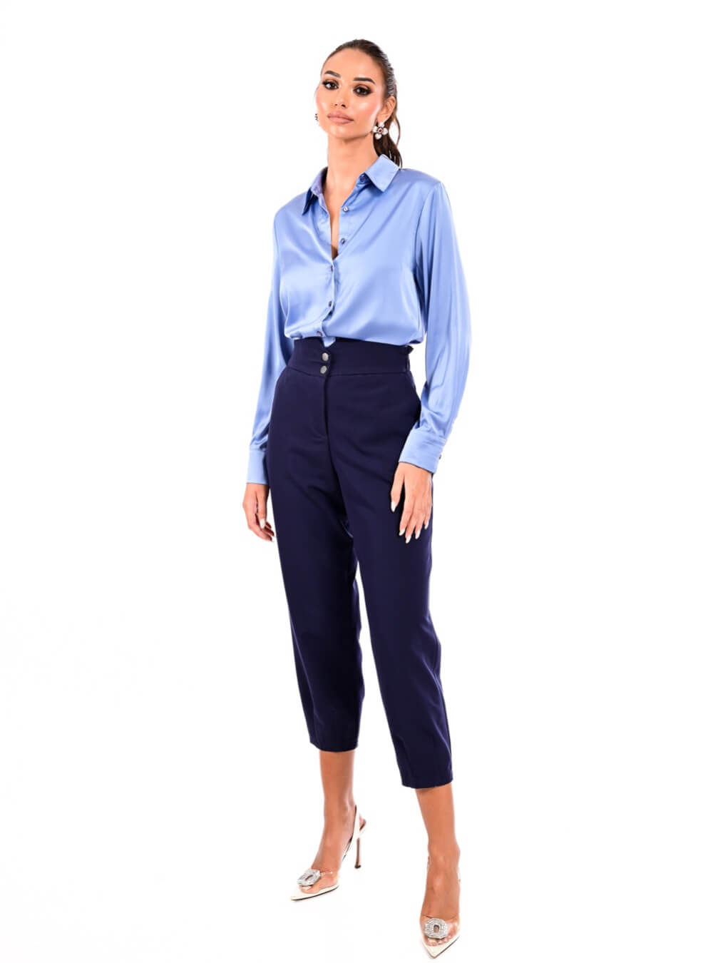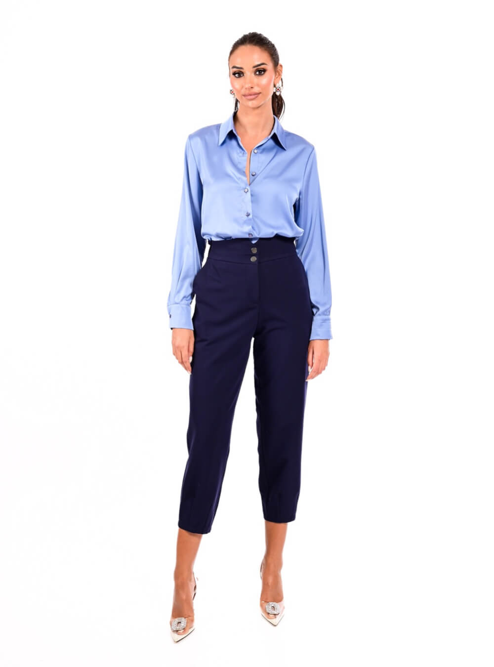 Γυναικείο ψηλόμεσο υφασμάτινο παντελόνι μπλε WE COSS.