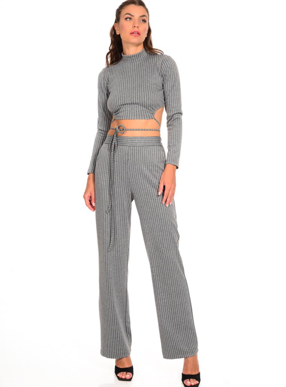 WE COSS crop top και παντελόνι γυναικείο ριγέ σε γκρι χρώμα ||WE COSS||ΓΥΝΑΙΚΕΙΑ ΡΟΥΧΑ