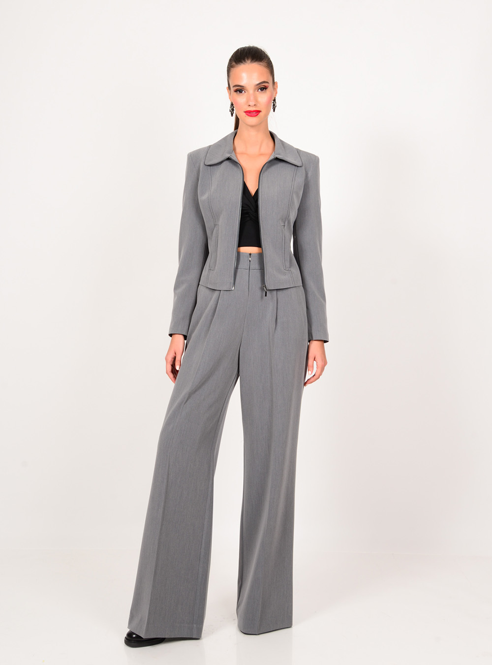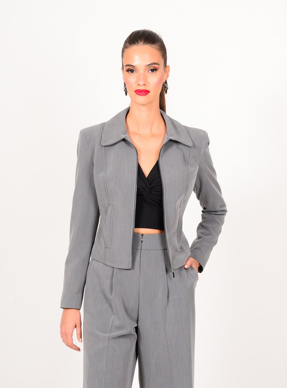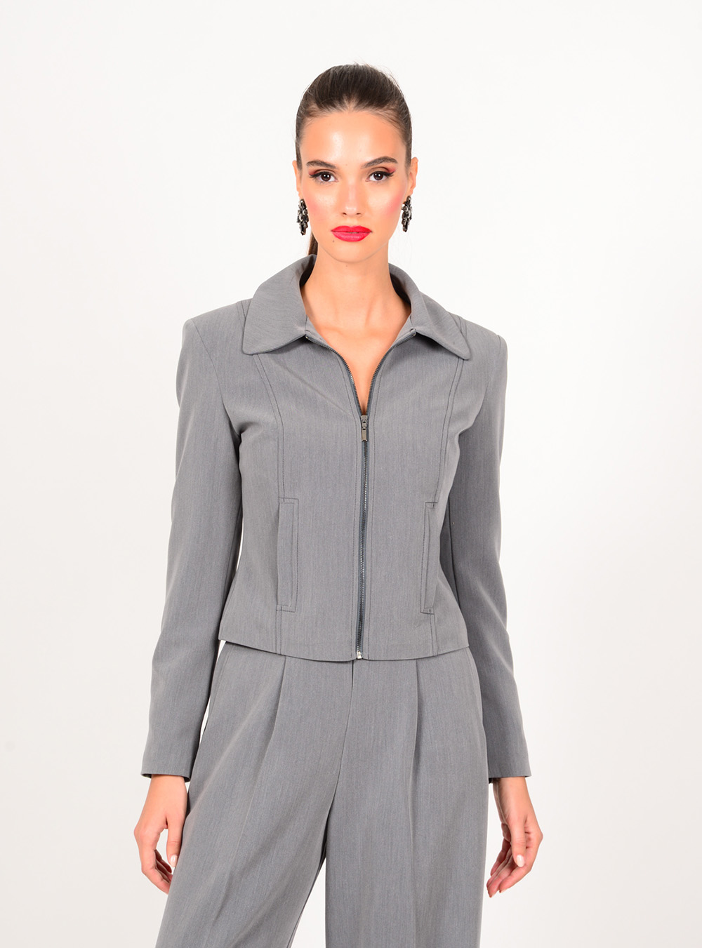 Γυναικείο μεσάτο σακάκι με φερμουάρ σε γκρι χρώμα WE COSS.