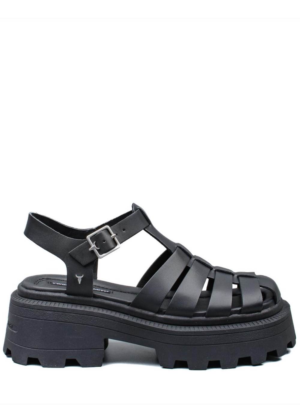 Γυναικεία δερμάτινα σανδάλια WINDSOR SMITH RARE σε μαύρο χρώμα.